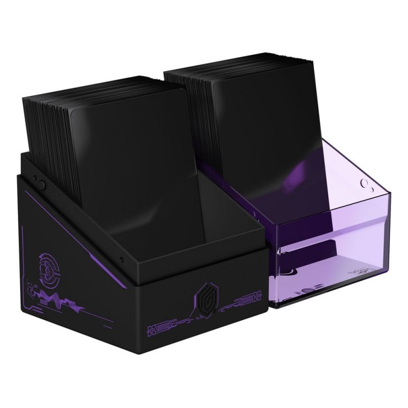 Con capacidad para hasta 100 cartas de doble funda utilizando fundas Ultimate Guard, ofrece una protección superior y es fácil de abrir gracias a su cierre seguro y cómodo. Su diseño modular permite combinarla perfectamente con cajas de almacenamiento masivo como Arkhive, Superhive y Flip'n'Tray.