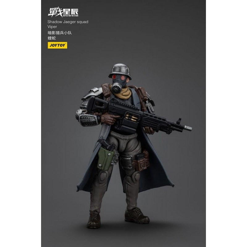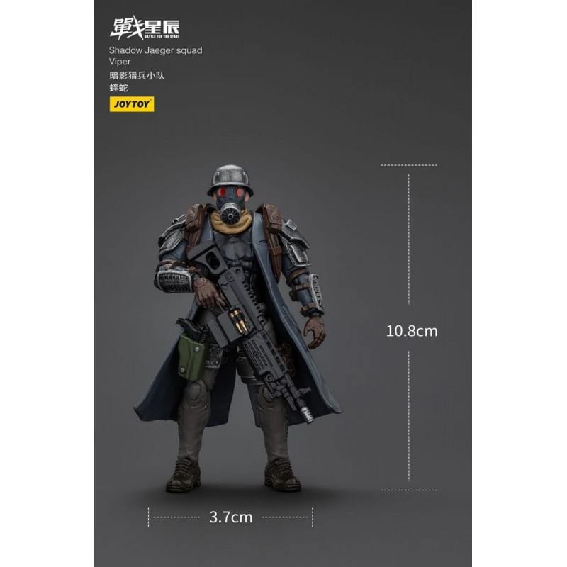 Descubre la impresionante figura articulada de 16 cm de Shadow Jaeger Squad Viper, parte del famoso juego de miniaturas de estrategia Battle For the Stars. Este coleccionable, fabricado por Joy Toy (CN), es perfecto para los aficionados del universo de ciencia ficción.