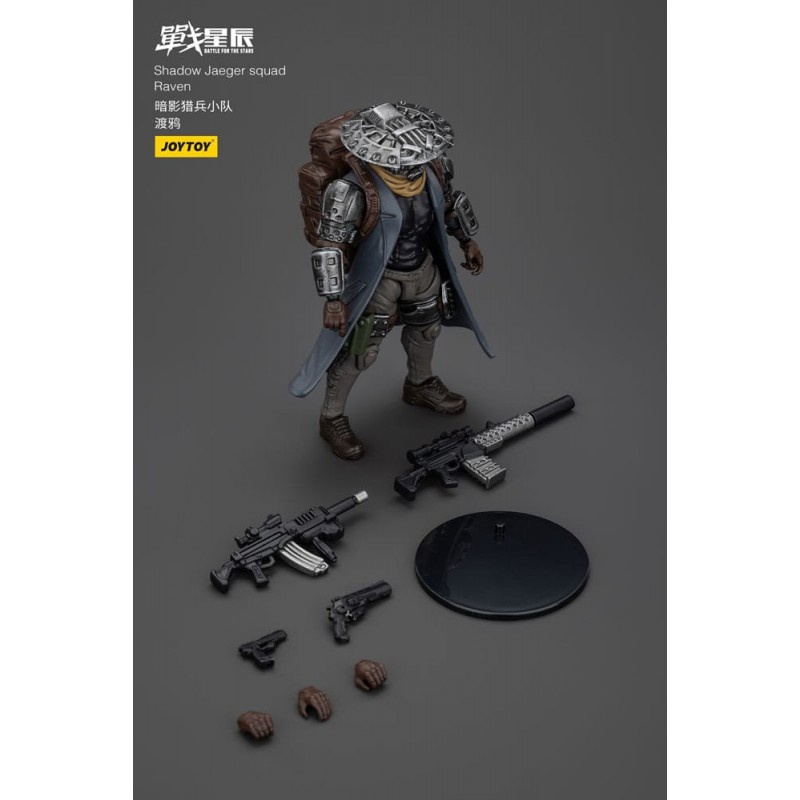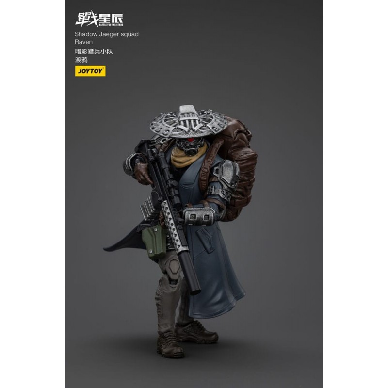 La Figura articulada Shadow Jaeger Squad Raven de 16 cm, inspirada en el juego de miniaturas de estrategia "Battle For the Stars", es una pieza destacada para cualquier coleccionista de figuras de acción. Esta figura, fabricada por Joy Toy, presenta un diseño meticuloso que refleja el carácter de un guerrero futurista.