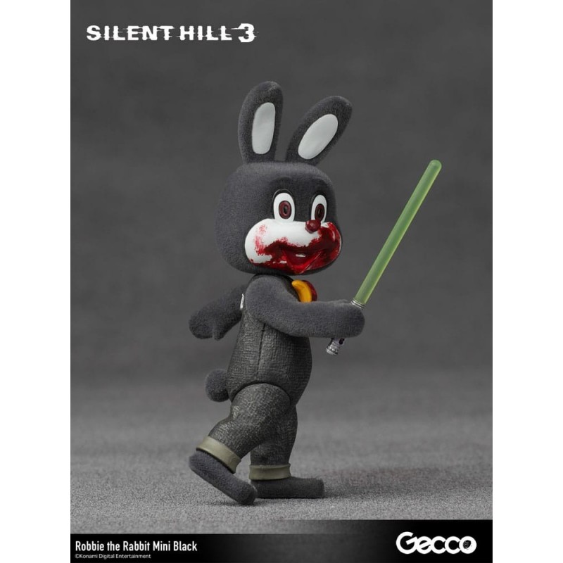 Descubre la figura mini de Robbie the Rabbit en su versión negra, una pieza exclusiva del popular videojuego Silent Hill 3. Esta figura, fabricada por Gecco en PVC de alta calidad, mide aproximadamente 10 cm de altura, haciéndola perfecta para cualquier estantería de coleccionista. Los detalles son impactantes: presenta un acabado en negro mate con un lazo amarillo vibrante al cuello, y una expresión escalofriante que captura la esencia del juego.