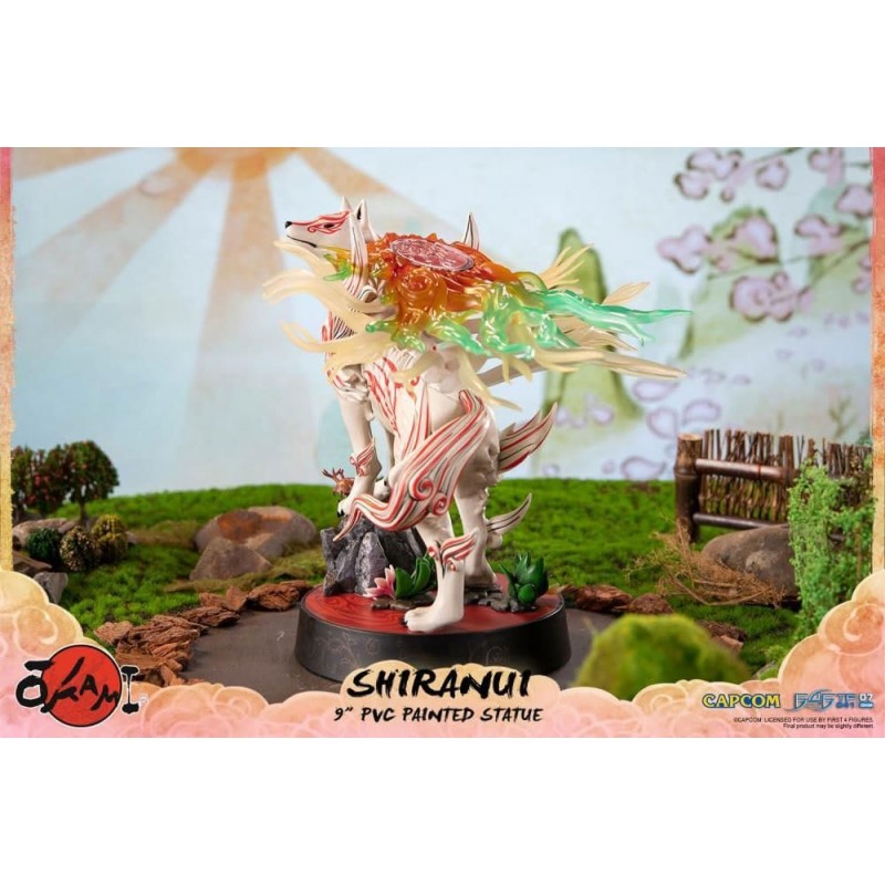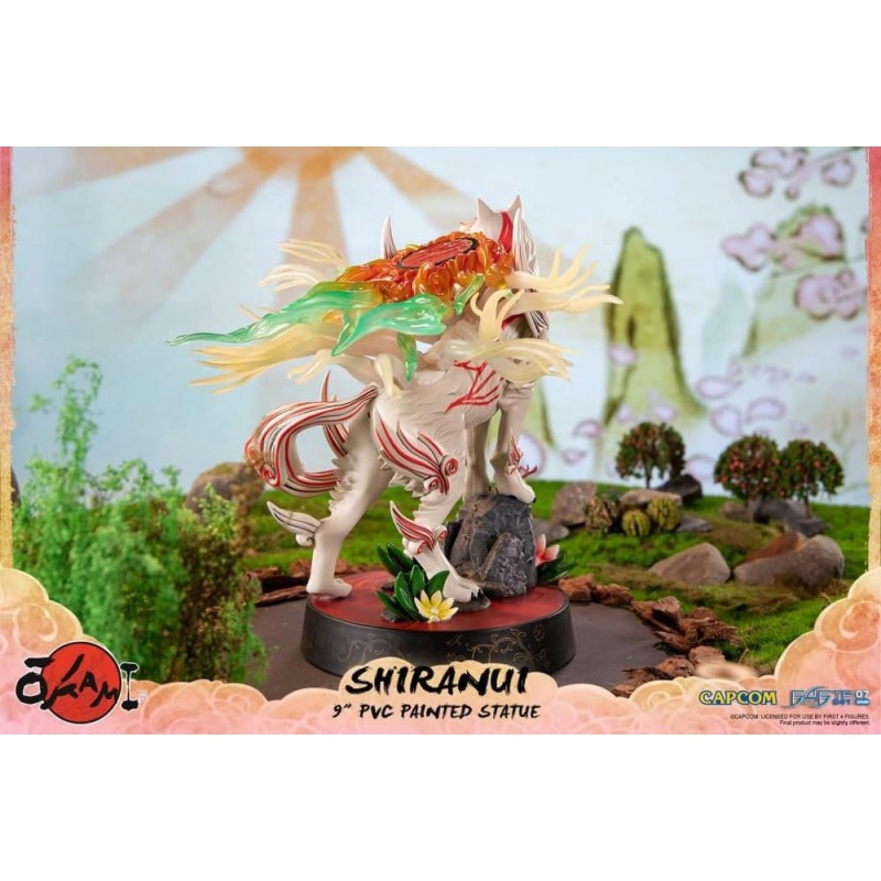 Descubre la estatua de resina Shiranui Standard Pose de First 4 Figures, inspirada en el estilo artístico de Okami. Esta edición estándar muestra al lobo con su cabeza girada hacia un lado, capturando la esencia mística del personaje.