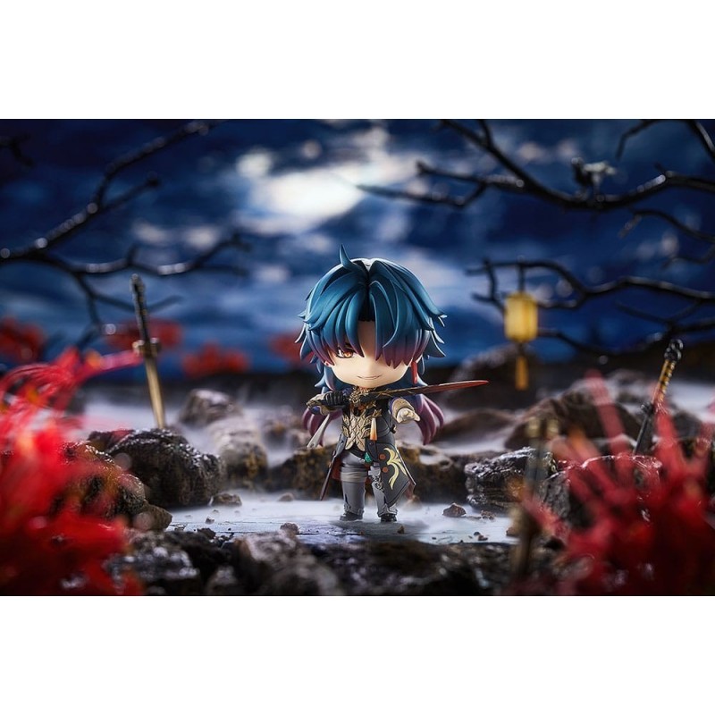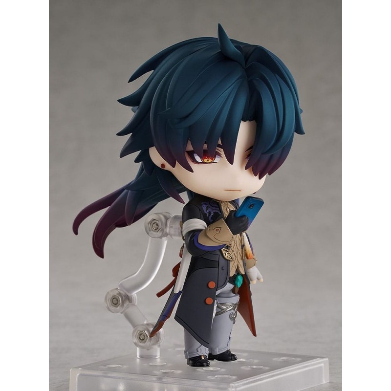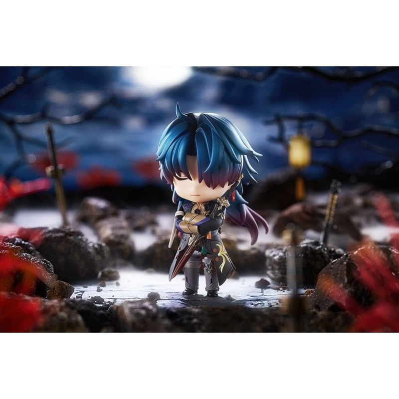 Descubre la impresionante figura Nendoroid Blade del popular juego Honkai: Star Rail. Esta figura articulada, fabricada por Good Smile Company, mide aproximadamente 10 cm y está hecha con gran atención al detalle. Representa al personaje con su característica mirada seria y su espada detallada, vestida con un abrigo y accesorios elegantes en tonos oscuros y detalles dorados. El cabello presenta un degradado de azul a violeta, dándole un toque vibrante.