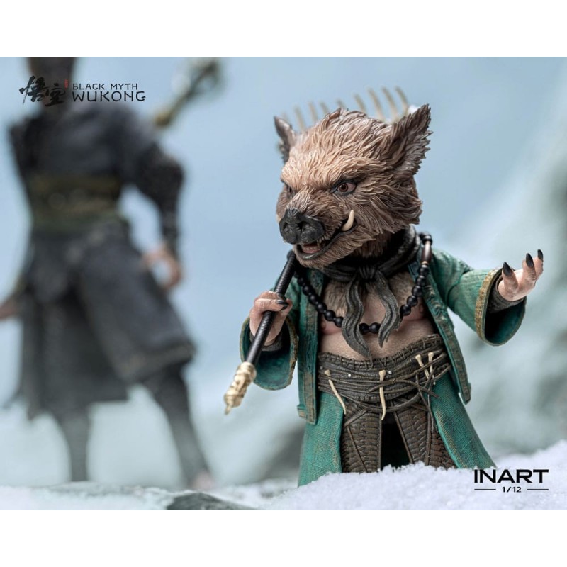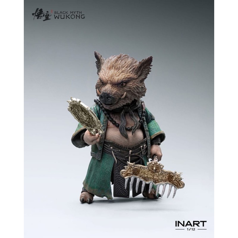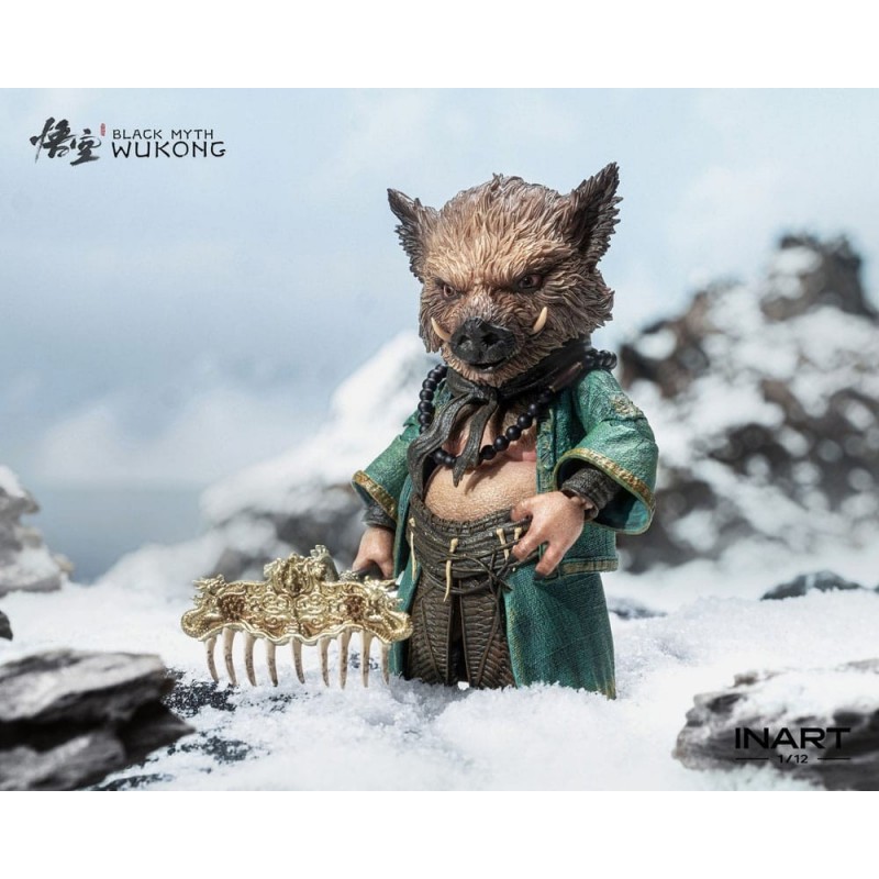 Sumérgete en el fascinante universo de Black Myth: Wukong con esta impresionante figura de Zhu Bajie, diseñada a escala 1/12. Con una altura aproximada de 15 cm, esta figura articulada es perfecta para los coleccionistas exigentes. Cada detalle ha sido meticulosamente terminado y pintado a mano, reflejando la calidad excepcional que ofrece Queen Studios. La figura presenta a Zhu Bajie con su característico atuendo en tonos verdes, sosteniendo un bastón ornamentado y una esfera verde que le otorga un aire místico y poderoso.