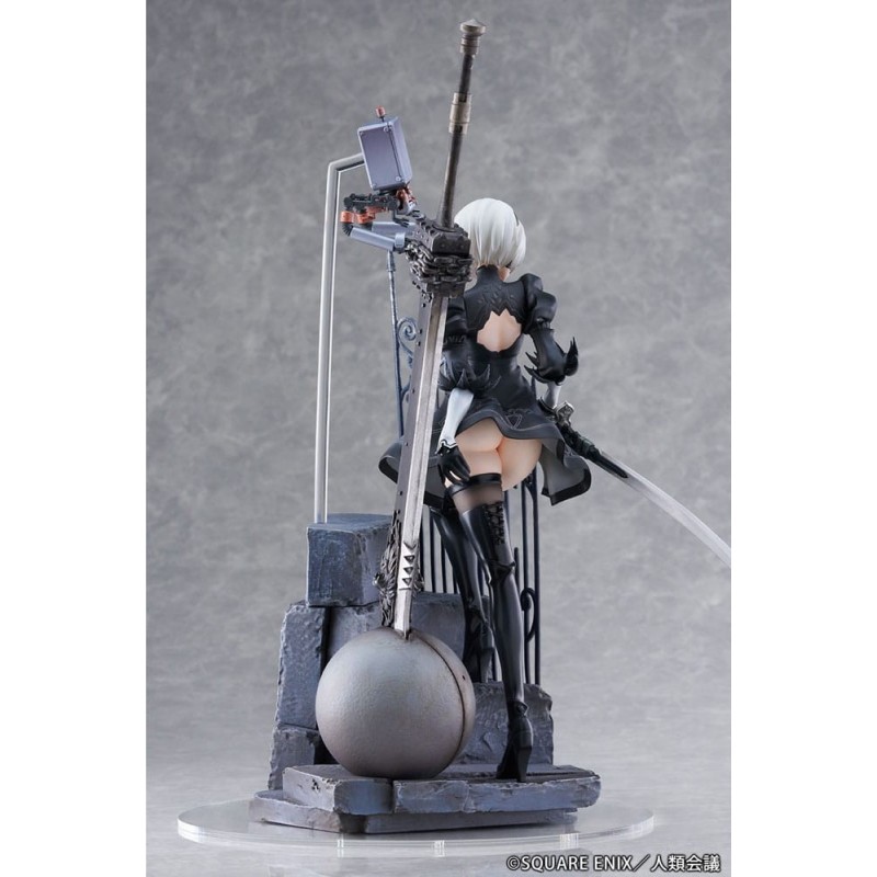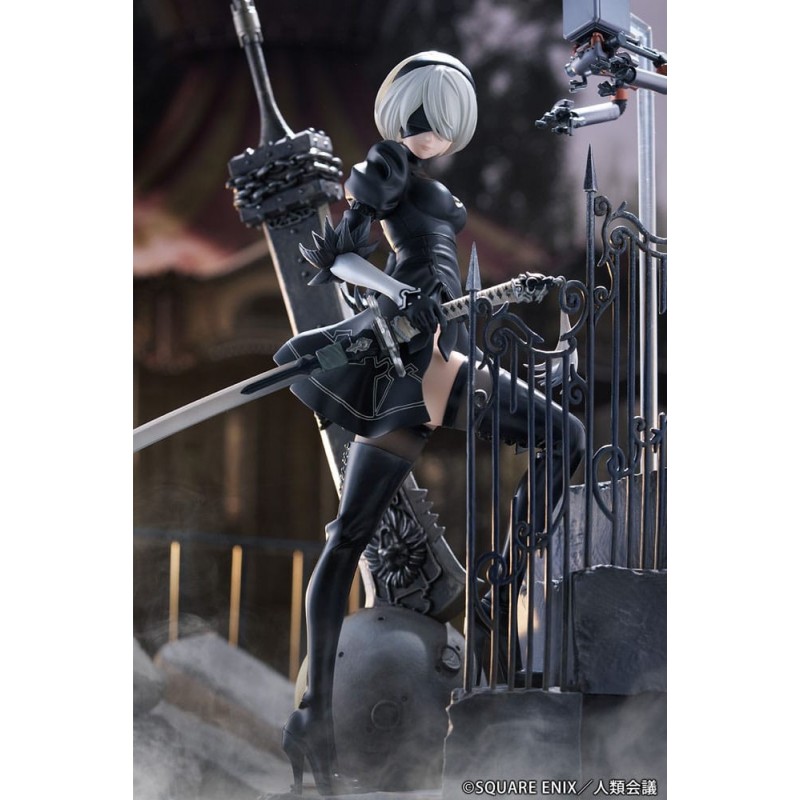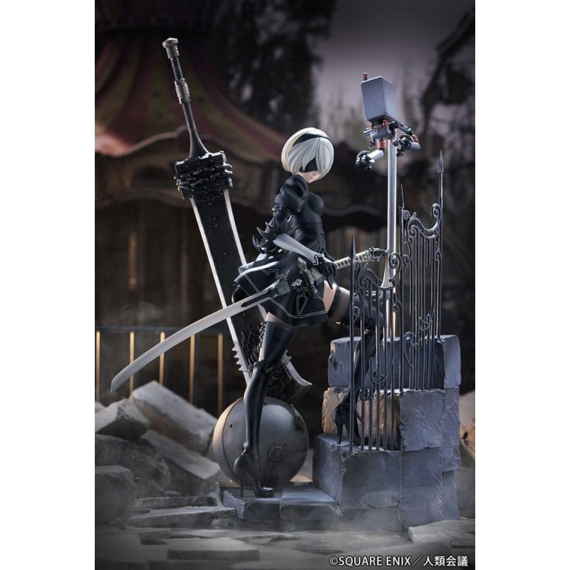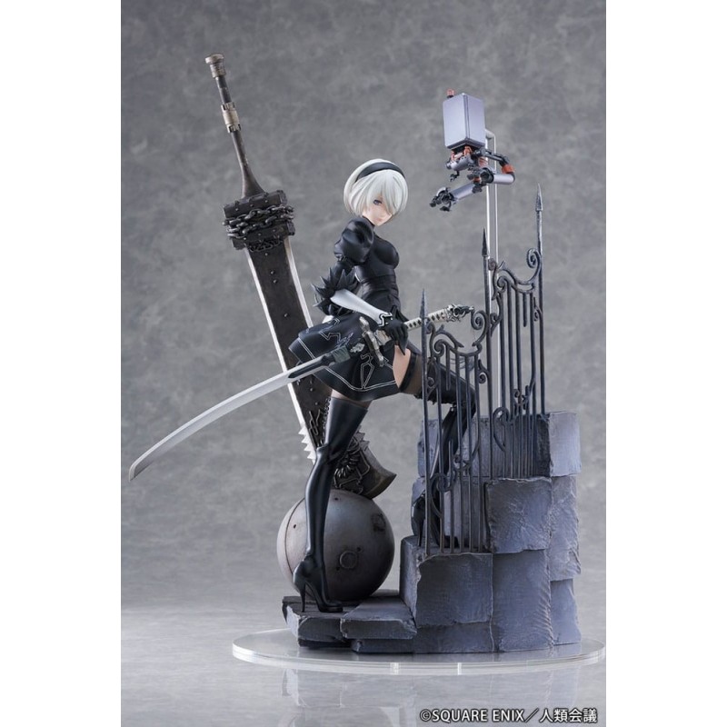 Descubre la impresionante estatua de YoRHa No. 2 Type B del anime 'NieR:Automata Ver1.1a'. Esta pieza está elaborada en PVC de alta calidad y tiene un tamaño de aproximadamente 31 cm, capturando con detalle cada aspecto icónico del personaje. Vestida con su característico atuendo negro, la figura se presenta en una postura dinámica junto a una espada imponente y detalles de escenografía con barandillas góticas. Esta estatua, fabricada por Proof, viene en una elegante caja con ventana, perfecta para exhibir. Es un producto con licencia oficial, ideal tanto para los coleccionistas de NieR como para los amantes del anime y manga. Un regalo original para cualquier fanático.