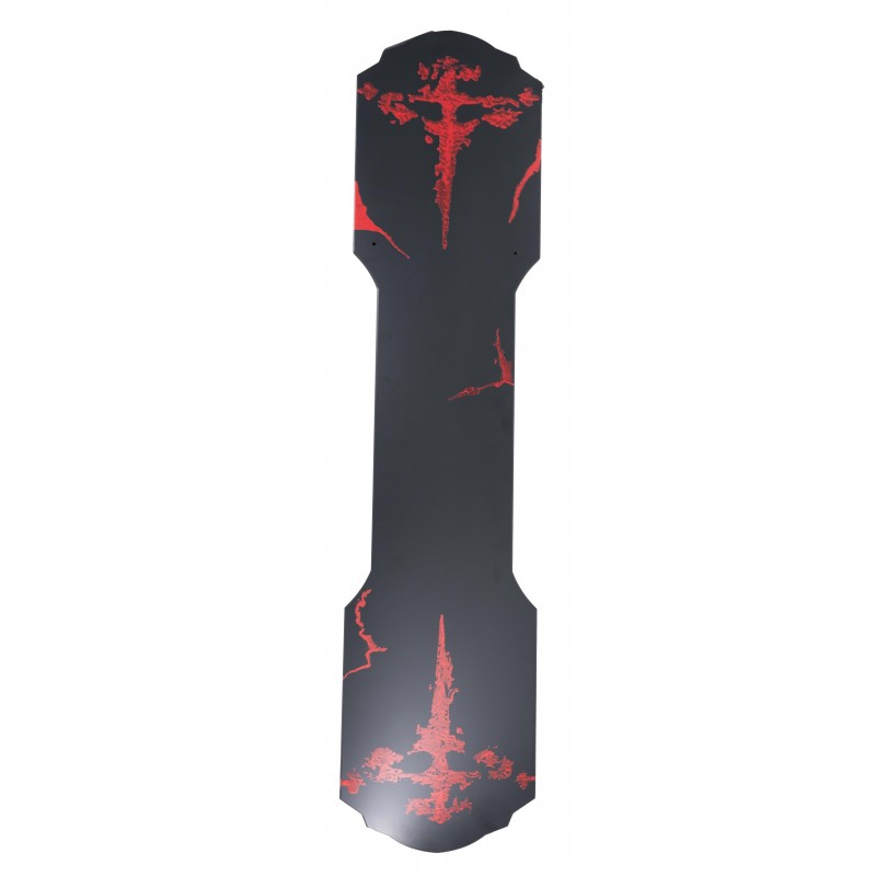 Sumérgete en el universo de Elden Ring con esta impresionante réplica de la Espada Negra de Maliketh. Con un tamaño total de 118 cm, presenta un mango metálico acabado en dorado que destaca por sus detalles intrincados. La hoja de acero, con un grosor de 5,1 mm, está acabada en color negro con detalles en rojo, emulando la estética original del juego.