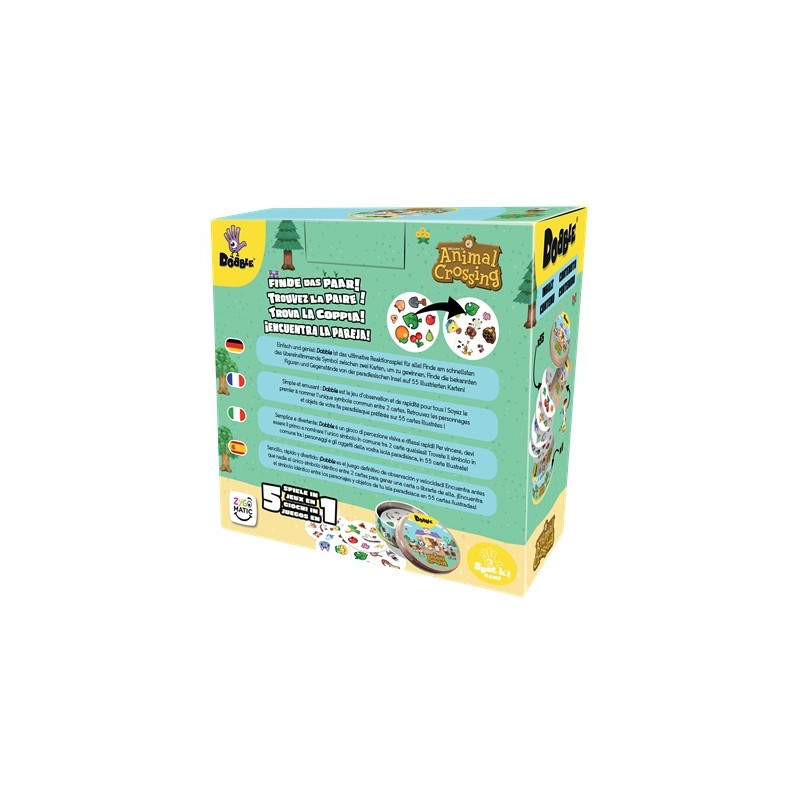 Descubre el emocionante Dobble Animal Crossing, un juego de cartas de la editorial Zygomatic que te atrapará con su dinámica rápida y desafiante. Este juego, parte de la popular colección Dobble, contiene 55 cartas ilustradas con los encantadores personajes y objetivos de la isla paradisíaca de Animal Crossing.