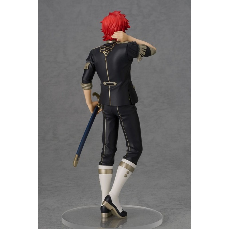 Con su cabello rojo vibrante y uniforme elegante, Sylvain está representado con su característico estilo encantador. La pose relajada, con la mano en la nuca y sosteniendo una espada en la otra, resalta su personalidad carismática. Cada detalle de su vestimenta, desde las hombreras hasta los adornos dorados, ha sido esculpido con precisión.