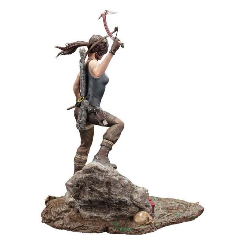 La estatua de Lara Croft Survivor de Tomb Raider es una pieza de colección impresionante de 33 cm de altura. Fabricada en detallado PVC, captura a Lara en una postura dinámica, lista para la acción. Está en una base rocosa con el logotipo de Tomb Raider y un cráneo, realzando su atmósfera aventurera. Incluye detalles como la antorcha y el piolet, fieles al diseño del videojuego. Ideal para coleccionistas y fans del universo Tomb Raider. Fabricada por Dark Horse, oficial y con licencia.