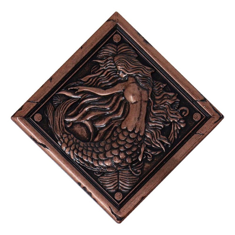 Cada medallón presenta un acabado que recuerda al cobre envejecido, otorgando un toque clásico y elegante. Los diseños detallados incluyen motivos como un sol y una luna, una sirena, un caballo dentro de una herradura y un escudo floral con espadas cruzadas. Estos medallones son ideales para exhibir y ofrecen un toque distintivo a cualquier colección o espacio decorativo.