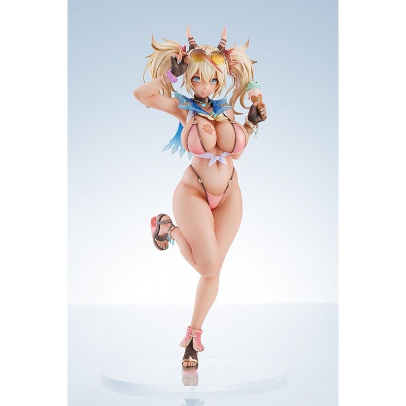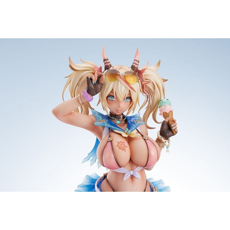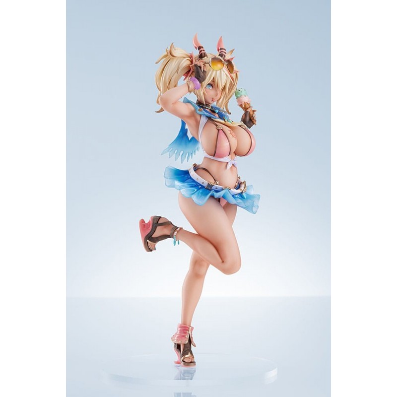 Descubre la estatua de 27 cm de Idola Phantasy Star Saga – Summer Innocent Gene, una pieza detalladamente esculpida en PVC que captura a la perfección la esencia del personaje. Esta figura se destaca por su pose dinámica y sus colores vibrantes que evocan un ambiente veraniego. El diseño muestra a Gene sosteniendo un helado, con un traje de baño en tonos azul y rosa que realza su estilo único.