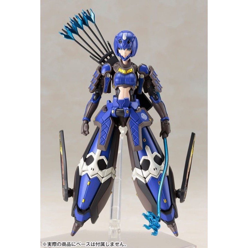 La figura presenta un diseño detallado en tonos azules y negros, con elementos dorados y plateados que resaltan su estética futurista y de combate. Incluye una variedad de accesorios, como arco, flechas y manos intercambiables, para recrear escenas de acción o posicionarla según tus preferencias.