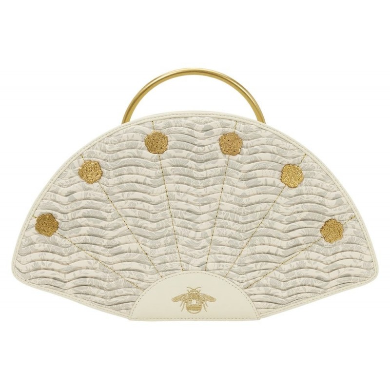 El diseño del bolso es un homenaje a la serie, con un patrón que evoca la sofisticación de la era regencia. El exterior presenta un color crema adornado con detalles dorados que añaden un toque de lujo. En su interior, el forro está decorado con motivos florales y elementos que recuerdan a la famosa serie, brindando un guiño sutil a los aficionados.