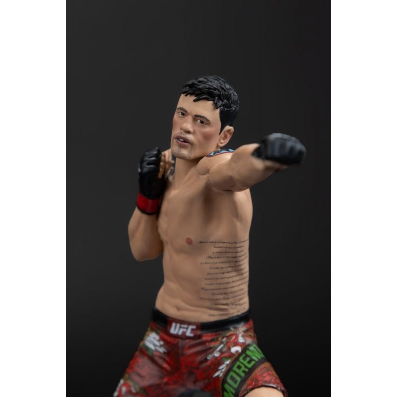 La estatua de PVC de Brandon Moreno de la línea UFC es una representación perfecta para los fanáticos del deporte de contacto más popular del mundo. Fabricada por McFarlane Toys, esta pieza mide aproximadamente 16,3 cm y está diseñada con gran atención al detalle, capturando la esencia del luchador en una pose dinámica y realista. El acabado meticuloso del atuendo y los guantes, así como los detalles faciales, hacen de esta estatua un excelente artículo de colección.