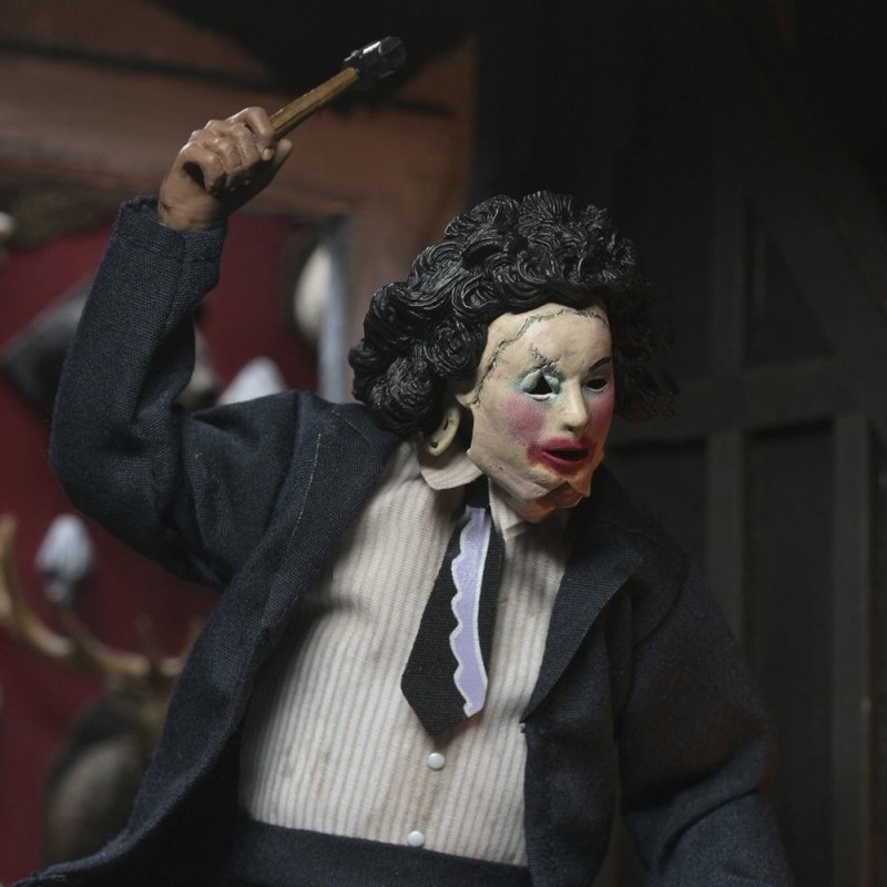 Entre sus accesorios se incluyen la icónica motosierra verde, un martillo, un cuchillo curvado y una mano intercambiable, lo que permite recrear escenas clásicas o crear composiciones nuevas. Sus puntos de articulación ofrecen varias opciones de posado, poniéndola a la altura de cualquier vitrina de exhibición.