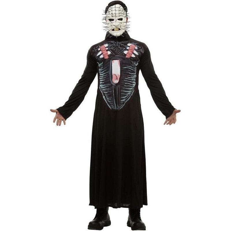 Transforma cualquier ocasión con el disfraz de Pinhead, inspirado en la icónica película Hellraiser. Este producto, con licencia oficial de la marca GHOULISH, ofrece una representación auténtica del temido líder cenobita. La máscara reproduce fielmente la emblemática cabeza con clavos, mientras que el traje negro con detalles en el pecho añade un toque inquietante. Diseñado en talla única, se adapta cómodamente a la mayoría de los adultos.