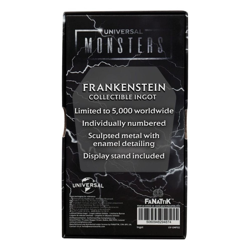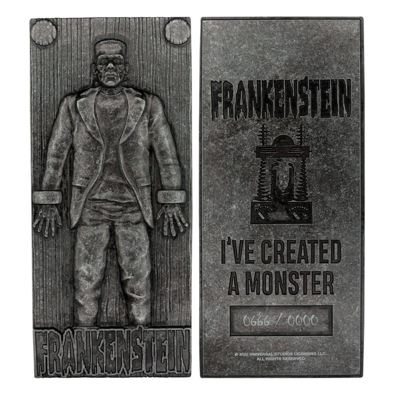 Este lingote coleccionable de Frankenstein es una pieza única para cualquier fan de los Universal Monsters. Elaborado en metal esculpido, destaca por su atención al detalle, mostrando al icónico Monstruo de Frankenstein en relieve. Con un tamaño de 6 x 13 cm, este artículo de colección viene en una caja con ventana y un soporte para exhibición. Esta edición está limitada a 5000 unidades, cada una con número único, lo que la convierte en un tesoro verdaderamente exclusivo. Fabricado por FaNaTtik, este producto con licencia oficial es el regalo perfecto para aquellos que desean un toque de originalidad y nostalgia en su colección.