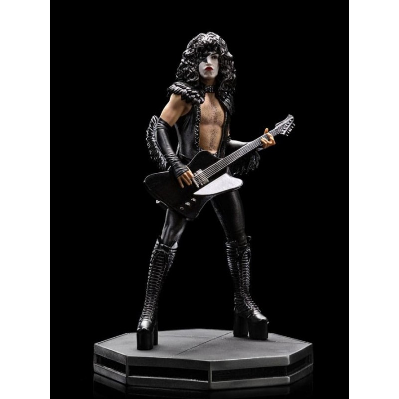 Descubre esta impresionante estatua de Paul Stanley de Kiss, meticulosamente diseñada por Iron Studios. Fabricada en poliresina de alta calidad, esta pieza de colección mide aproximadamente 22 cm y captura con fidelidad el icónico estilo del guitarrista. La estatua destaca por su fidelidad en los detalles, desde el maquillaje característico hasta su indumentaria negra con textura de cuero y tachuelas metálicas.