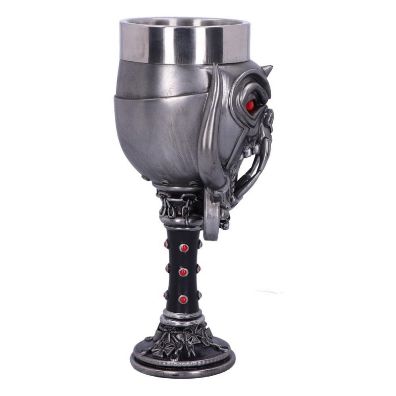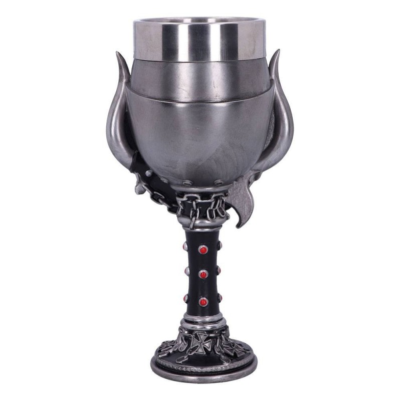 Con una altura aproximada de 20,5 cm, este cáliz es una pieza evidente de conversación y un complemento perfecto para cualquier colección de fanáticos de la banda. La base muestra adornos metálicos y detalles de cadena, otorgando un toque auténtico y robusto.