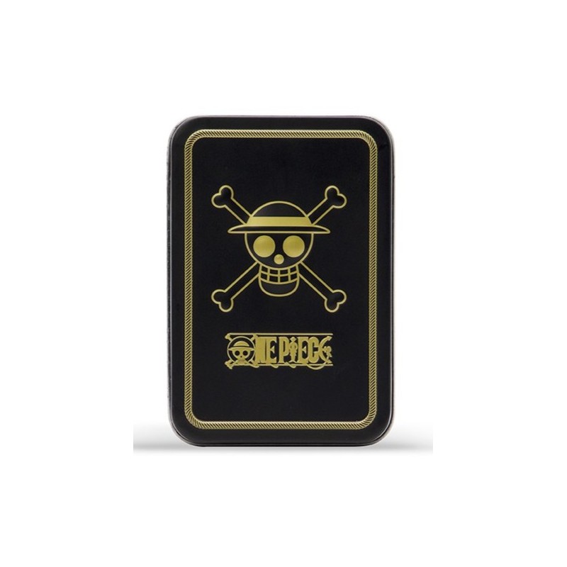 Descubre una experiencia única con esta baraja de cartas de One Piece. Presentada en un elegante estuche metálico negro con el icónico diseño de calavera y huesos cruzados, esta baraja es un tesoro para los fans de la serie. Las cartas tienen un acabado en negro mate con ilustraciones vibrantes de los personajes favoritos de One Piece, lo que las hace ideales para juegos y coleccionismo.