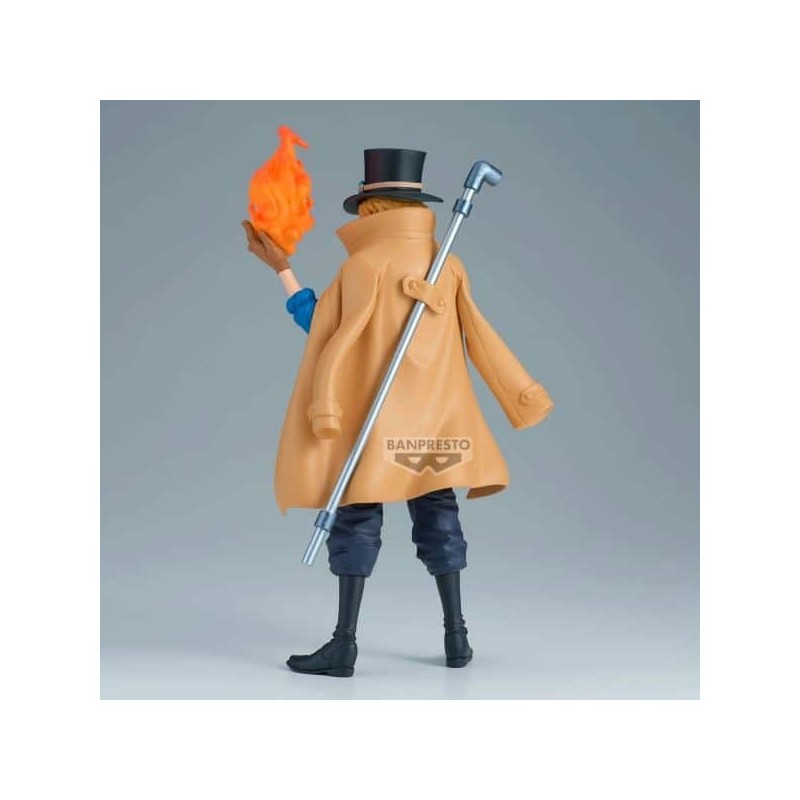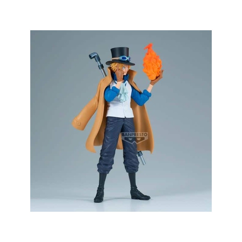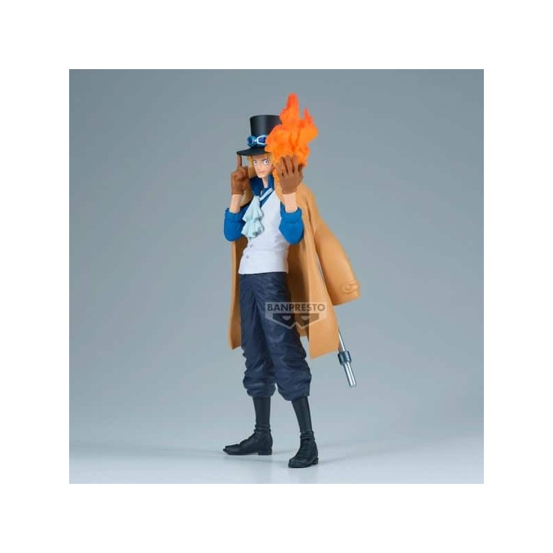 La figura de Sabo de One Piece, de la colección King Of Artist de Banpresto, destaca por su calidad y detalle. Mide 23 cm de altura y está fabricada en PVC y ABS de alta calidad. Sabo está representado en una pose dinámica, con su característico sombrero y gafas, y una llama en la mano que simboliza su poder. La pintura meticulosa resalta cada pliegue y rasgo facial, ofreciendo una fiel representación del personaje icónico.
