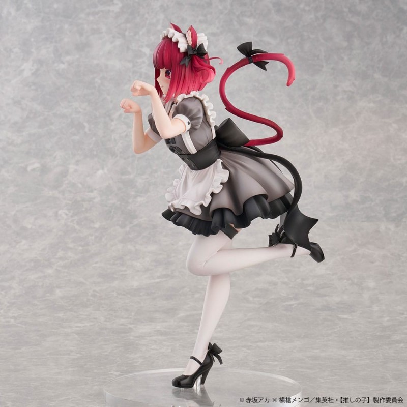 La estatua PVC 1/6 de Kana Arima Cat Maid Ver. es una pieza excepcional para cualquier fan del anime Oshi No Ko. Con un tamaño aproximado de 26 cm, esta figura captura a la perfección todos los detalles del personaje Kana Arima, presentándola en un encantador atuendo de sirvienta gatuna. Su vestido de tonos grises y blancos, adornado con volantes y un lazo negro, resalta su expresión dulce y cautivadora.