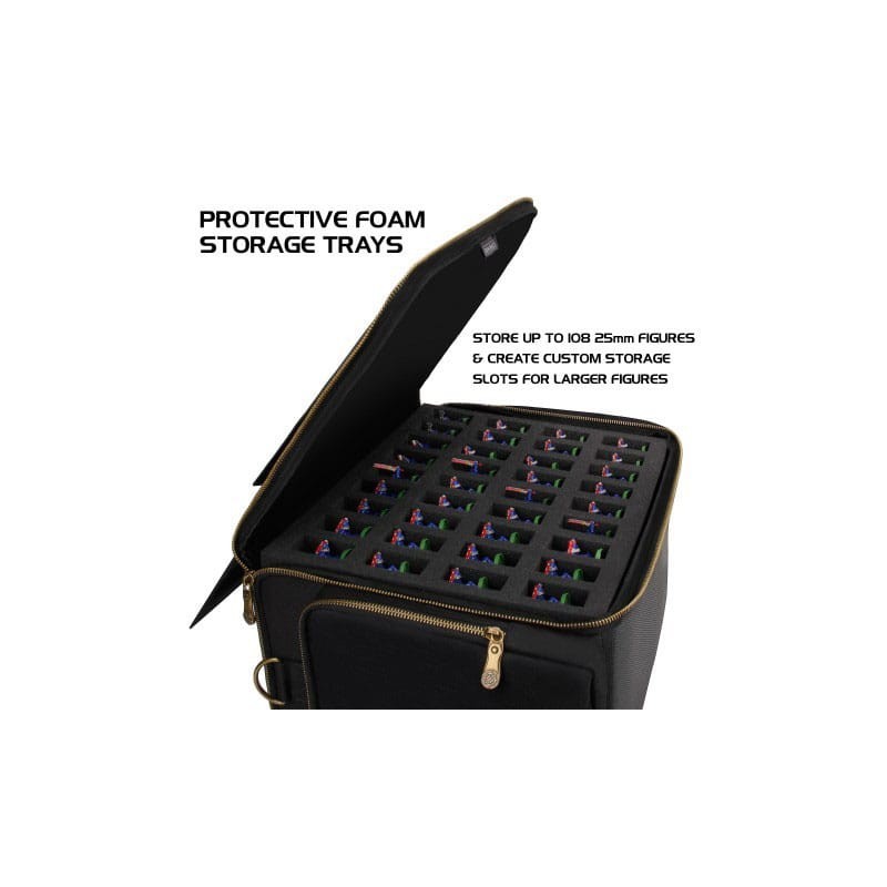 La Caja para figuritas de Enhance es el accesorio ideal para los entusiastas de los juegos de mesa y miniaturas. Con un elegante diseño, este bolso de almacenamiento en color negro ofrece una protección óptima y organización para hasta 108 figuras de 25 mm. Cuenta con 3 bandejas de espuma que contienen 36 compartimentos cada una, proporcionándote la flexibilidad para crear espacios personalizados para figuras de mayor tamaño o accesorios adicionales.