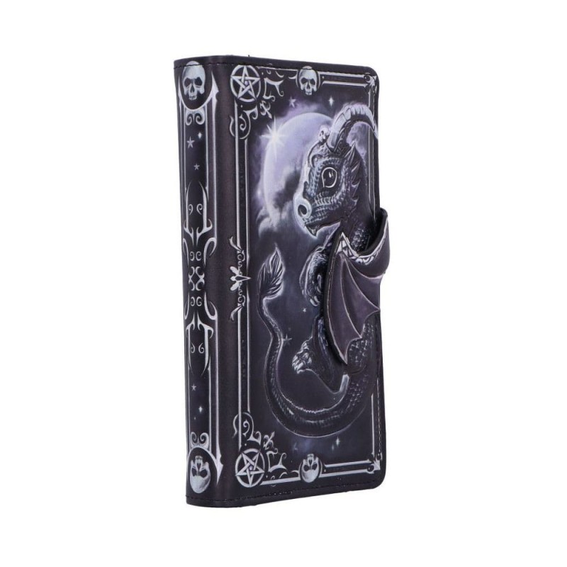 Descubre el Monedero Cult Cuties Moon of Lucifly, una pieza única creada por Nemesis Now. Con un tamaño de aproximadamente 18,5 cm, este monedero combina estilo y funcionalidad. Su diseño presenta un dragón detallado sobre un fondo nocturno, resaltado por elementos decorativos como pentagramas y calaveras, que le dan un toque místico.