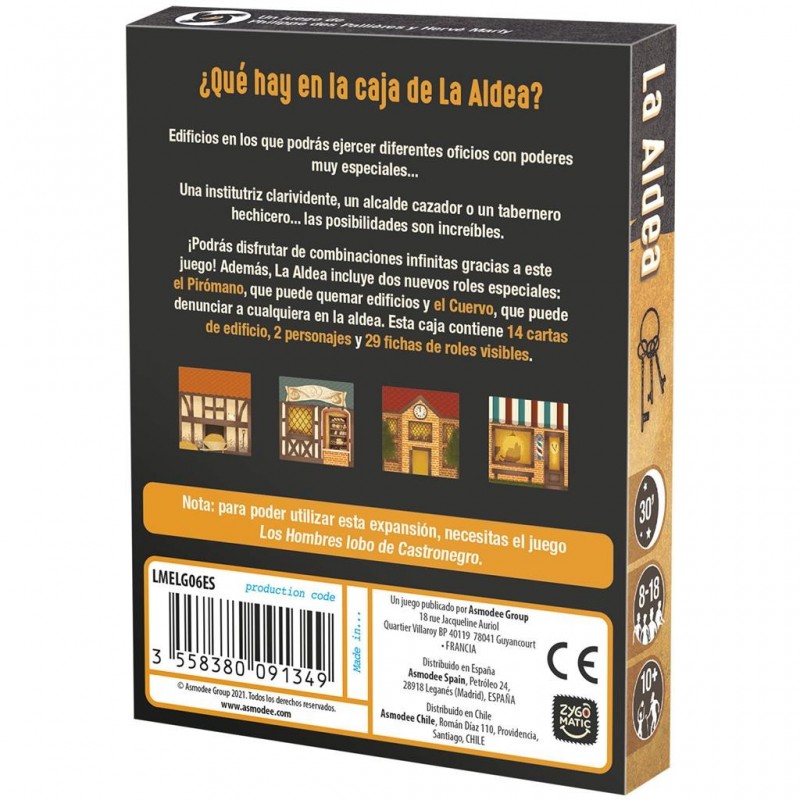 Adéntrate en un mundo lleno de misterio con La Aldea, la expansión del célebre juego Los Hombres Lobo de Castronegro. Experimenta nuevas dinámicas de juego con 14 cartas de edificio y 29 fichas de roles visibles que te permitirán vivir aventuras únicas en cada partida. Los nuevos personajes como el Pirómano y el Cuervo añaden una dimensión emocionante al juego ya que pueden influir dramáticamente en el desarrollo de la historia.