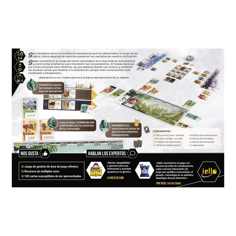 Embárcate en un viaje épico con Saber Ancestral, un juego de estrategia de cartas diseñado por Rémi Mathieu. Este juego te convierte en uno de los antiguos constructores del mundo, enfrentándote al reto de proteger y transmitir el conocimiento milenario de civilizaciones pasadas. Con 2 a 4 jugadores, para mayores de 14 años y con partidas de 75 minutos, planificarás cada movimiento para evitar que tus monumentos caigan en el olvido.