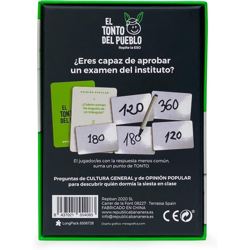 Descubre El Tonto del Pueblo, un innovador juego de mesa diseñado para retar tus conocimientos de la ESO y poner a prueba tu capacidad para pensar como la mayoría. Con un llamativo diseño en color verde, este juego es una combinación perfecta de preguntas de cultura general y opinión popular. Gana el jugador que logre evitar ser el Tonto del Pueblo sumando menos de 10 puntos por respuestas inusuales.