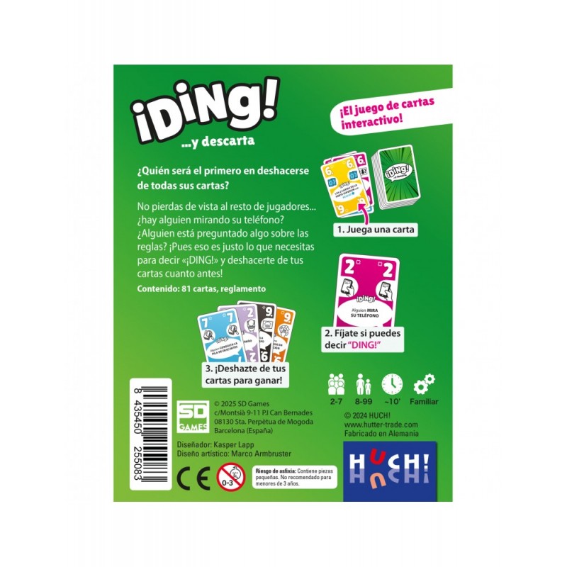 Descubre el emocionante juego de cartas Ding, donde la rapidez y la observación son clave. Este juego interactivo es perfecto para compartir con familia y amigos, y su objetivo es sencillo: sé el primero en deshacerte de todas tus cartas diciendo “¡DING!” en el momento adecuado. Con componentes coloridos y reglas fáciles de seguir, Ding es ideal para niños mayores de 8 años y grupos de 2 a 7 jugadores. Cada partida dura solo 10 minutos, asegurando diversión rápida y continua.
