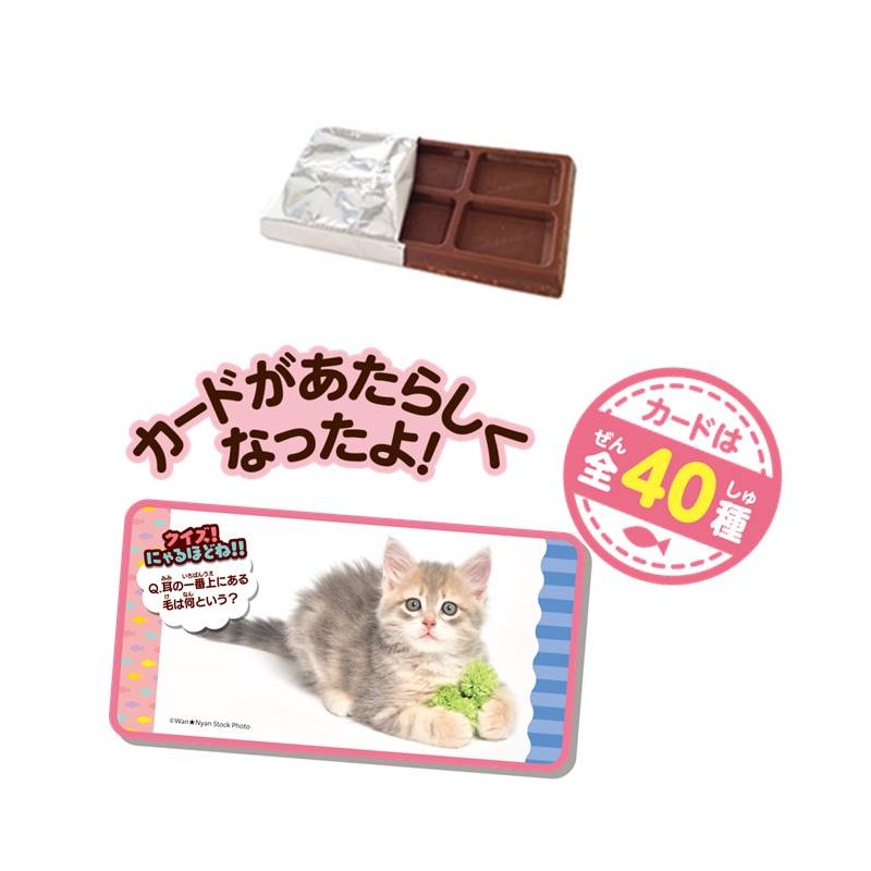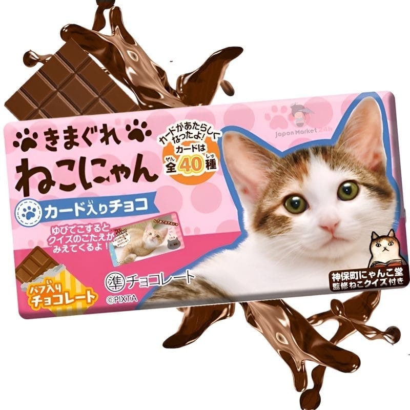 Cada tableta contiene 17,5 g de chocolate con un corazón crujiente, acompañado de una sorpresa especial: una de las 40 cartas ilustradas con adorables gatitos y curiosidades felinas escritas en japonés. Perfecta para quienes disfrutan del coleccionismo y productos únicos con encanto nipón.