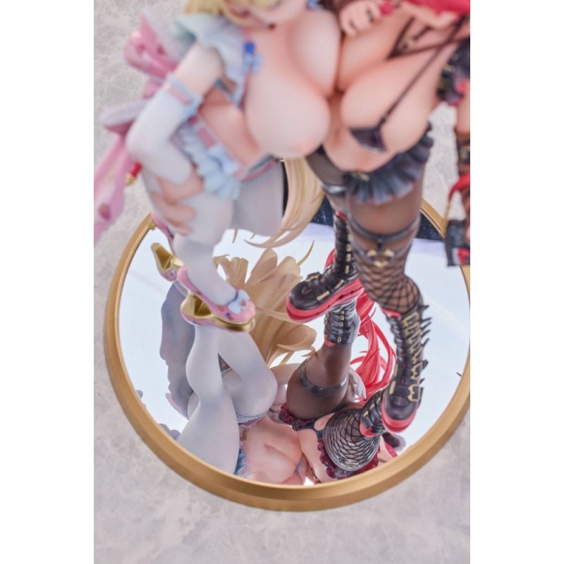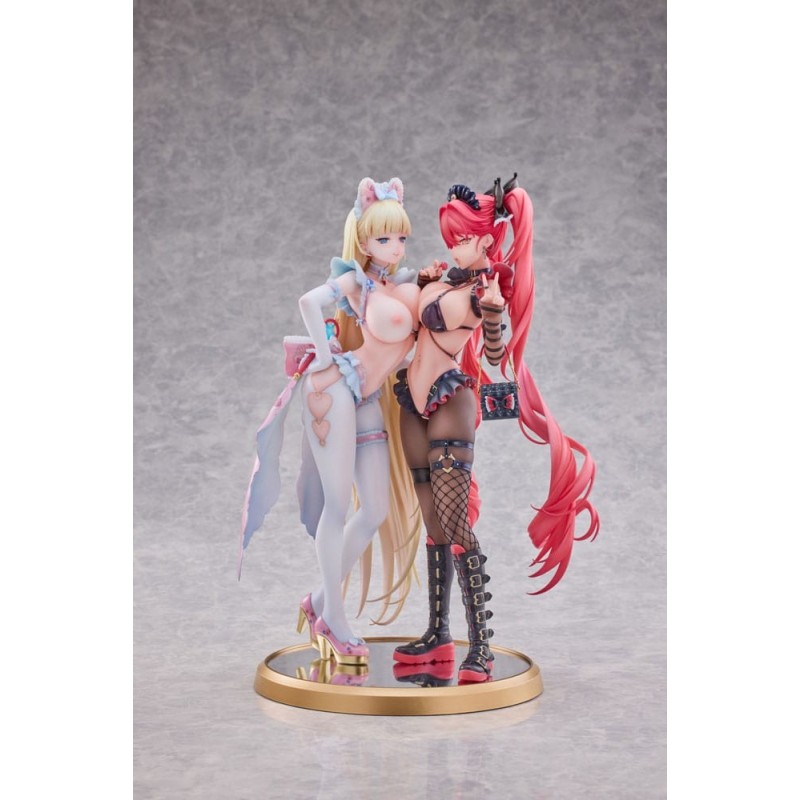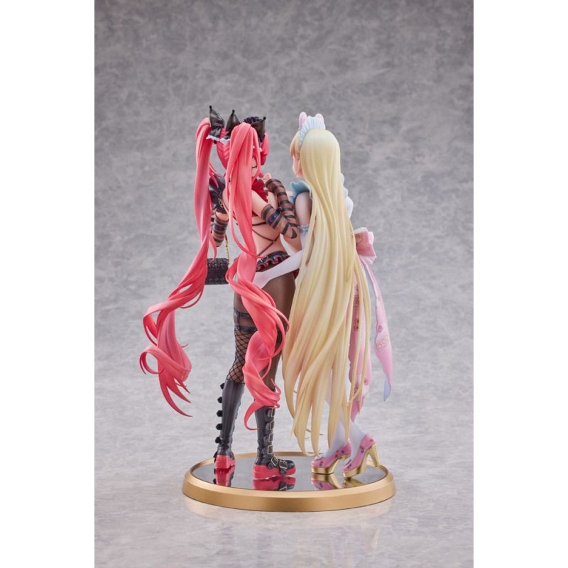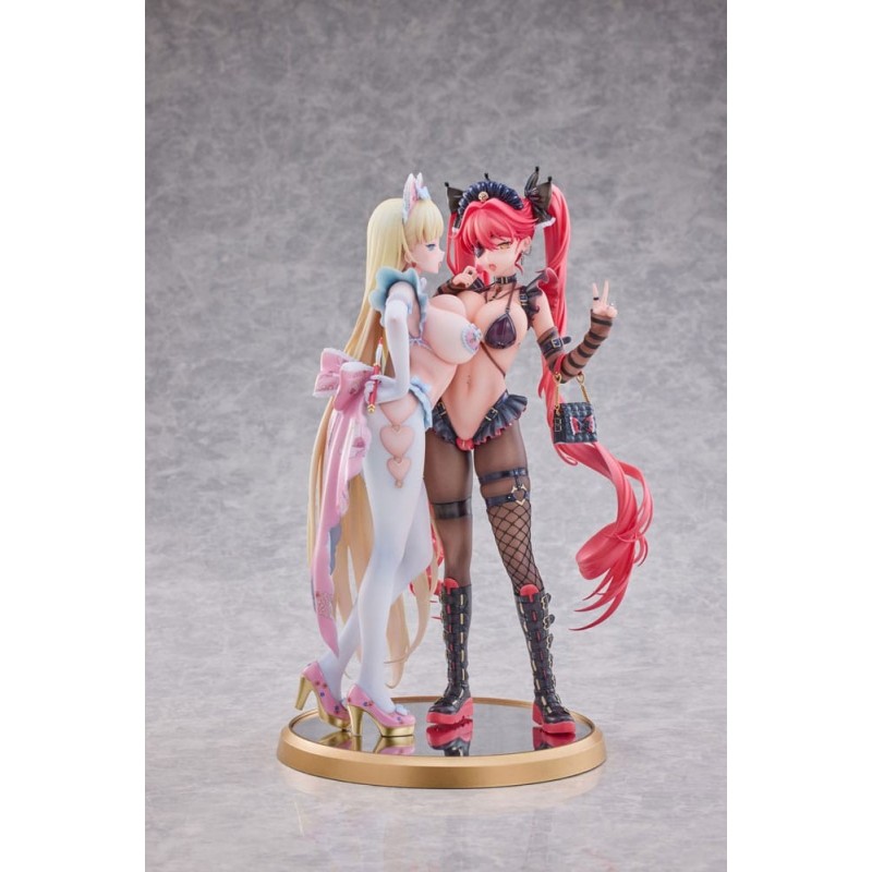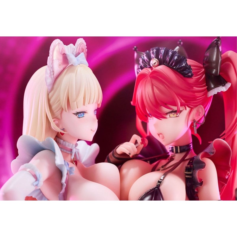 Las estatuas están vestidas con atuendos de carácter sugestivo, incorporando elementos como encajes y accesorios llamativos que subrayan su naturaleza dentro de la categoría Hentai para adultos. Estas figuras, perfectas para los coleccionistas más exigentes, vienen en una caja con ventana que permite visualizar las piezas sin necesidad de abrirla, preservando su estado para aquellos que desean mantenerlas intactas.