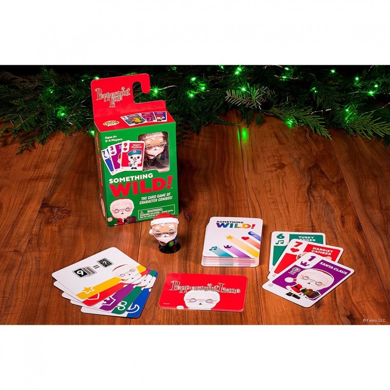 Descubre el divertido juego de cartas 'Something Wild!' de Peppermint Lane, una propuesta innovadora de Funko. Este juego incluye una baraja de cartas y una figura Funko Pop de 4 cm de Santa Claus, ideal para niños a partir de 6 años. La partida es rápida, con una duración aproximada de 15 minutos, y puede disfrutarse entre 2 a 4 jugadores.