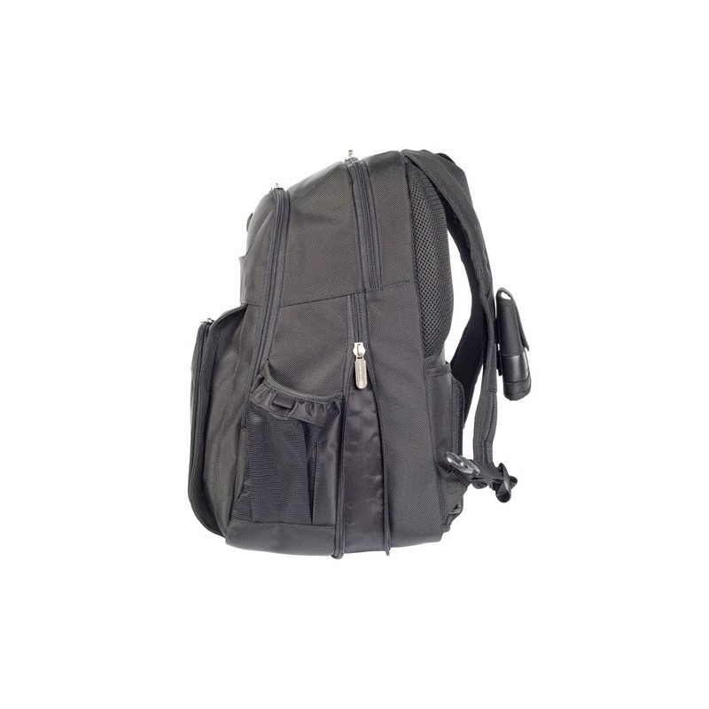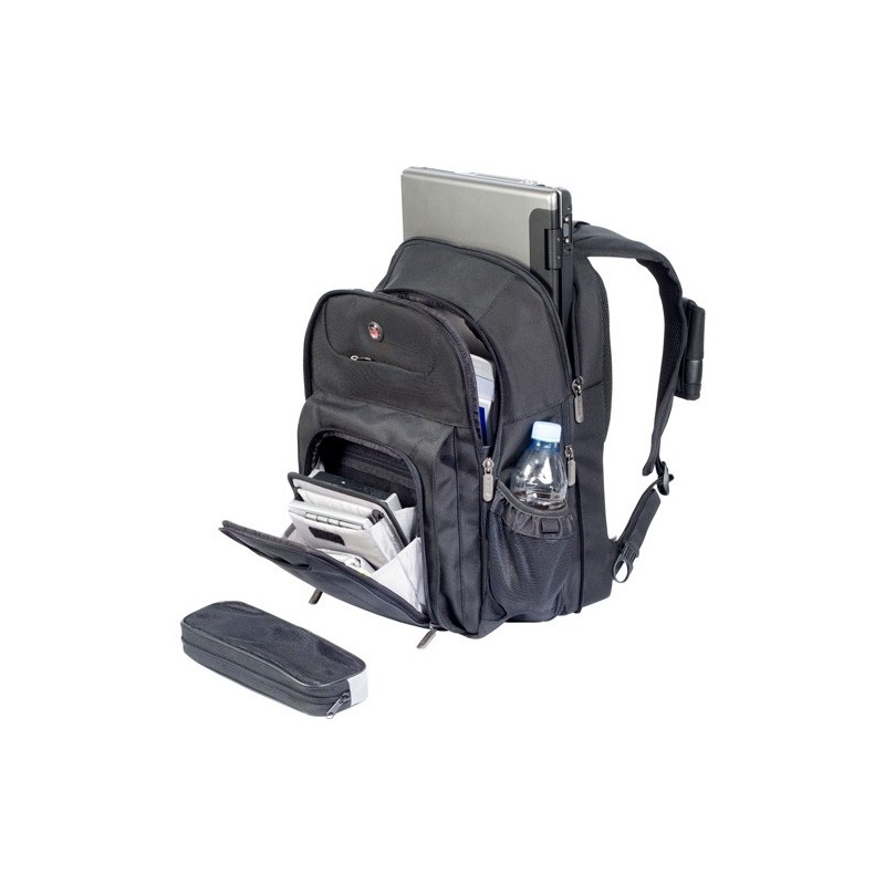 Las correas ergonómicas y el panel posterior de tejido de malla aseguran un transporte cómodo, mientras que sus múltiples compartimentos, incluyendo una estación de trabajo con cremallera y bolsillos frontales de acceso rápido, facilitan mantener todo organizado. Incorpora además una bolsa extraíble para tus accesorios y bolsillos para botellas de agua, añadiendo practicidad en cada uso.