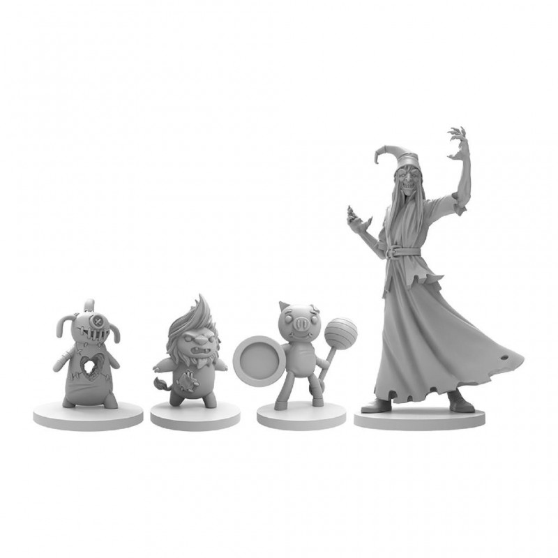 El juego incluye un Libro de cuentos que actúa como tablero, guía e historia. Con un vibrante diseño visual, ofrece 40 cartas de Hallazgo, miniaturas de Peluches y Esbirros, y una variedad de fichas y cartas para enriquecer la experiencia. Usa dados de colores para realizar acciones heroicas, desde ataques hasta saltos desesperados.