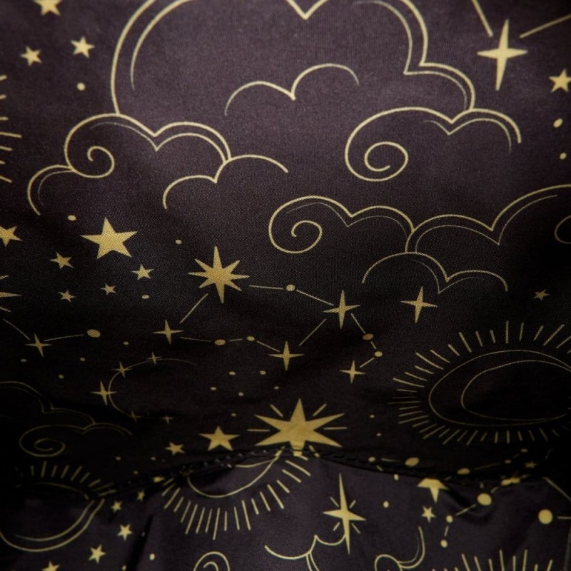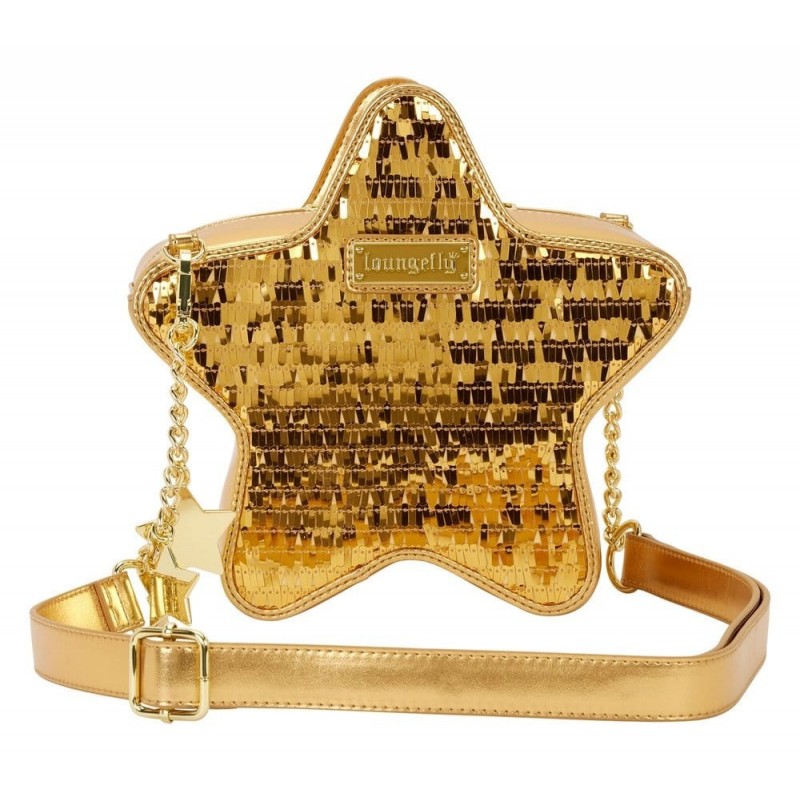 Esta bandolera no solo es un accesorio práctico, sino una declaración de moda. Su correa ajustable permite un uso cómodo, mientras que las estrellas doradas en relieve aportan un toque glamuroso. El interior, adornado con un sofisticado patrón de estrellas, resalta el enfoque en el detalle que Loungefly imprime a sus productos.