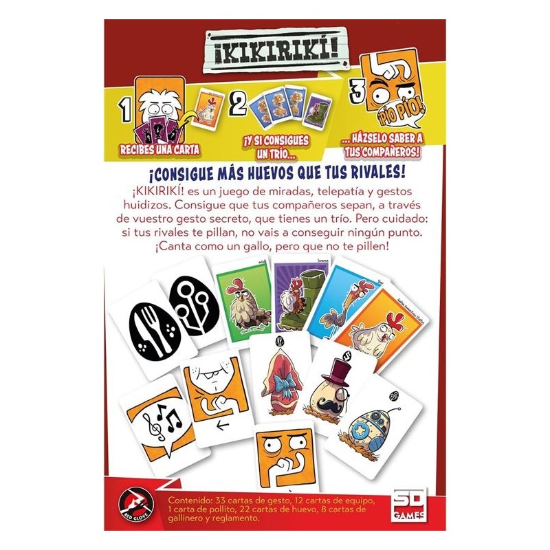 El contenido incluye 33 cartas de gesto, 12 de equipo, 1 carta de pollito, 22 de huevo y 8 de gallinero, además de un reglamento claro que facilita el inicio inmediato del juego. Fabricado por Sd Games, este producto con licencia oficial es un regalo ideal para cualquier ocasión.