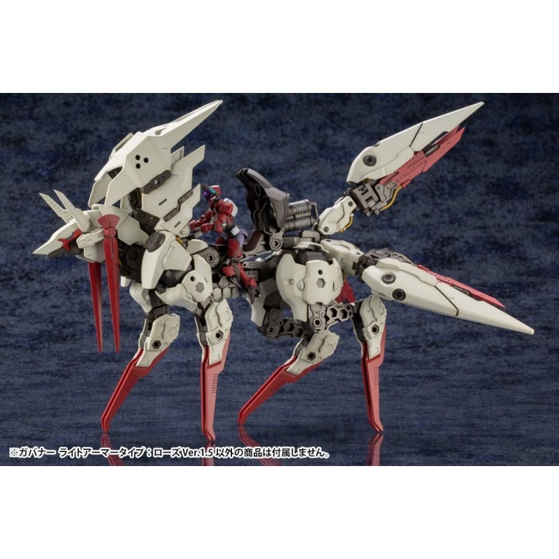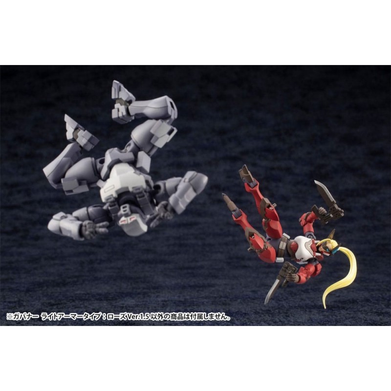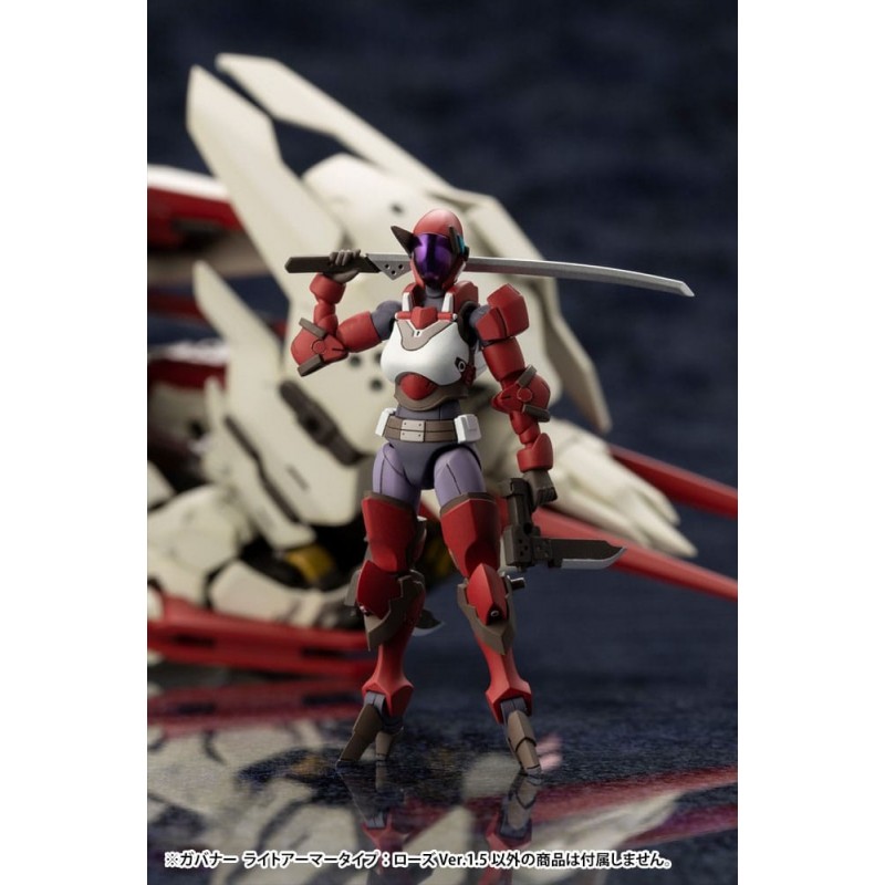 El conjunto incluye el Governor Light Armor Type Rose 1.5 Ver. 7, una figura altamente articulada, equipada con armamento de vanguardia y un atractivo esquema de colores en rojo, blanco y negro. Gracias a su sistema de ensamblaje Snap-Fit, no requiere uso de pegamento, facilitando su construcción y personalización al gusto del usuario.