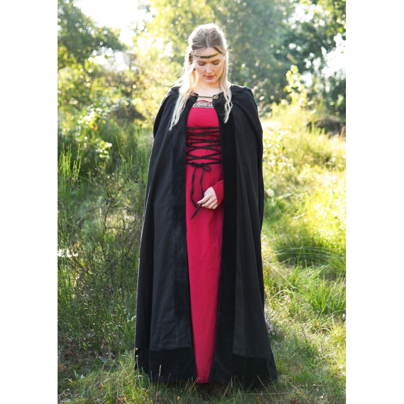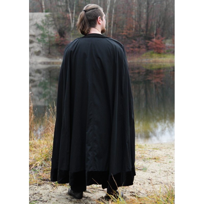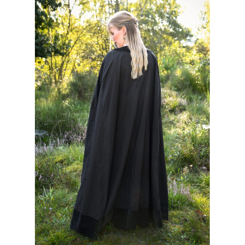 Esta capa medieval unisex es una pieza imprescindible para los amantes de la vestimenta histórica. De color negro y confeccionada en 100% algodón, cuenta con un elegante forro de terciopelo que le añade un aire sofisticado. Diseñada para proporcionar protección y calidez, mide aproximadamente 138 cm de longitud, ideal para reencarnaciones medievales y recreaciones históricas.