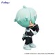 El personaje está vestido con un traje negro ajustado con detalles blancos, sosteniendo un arma en una mano. Su cabello azul claro y sus grandes ojos azules realzan su apariencia audaz y dinámica. El acabado de la estatua es de alta calidad, perfecto para exhibir en cualquier colección de manga y anime.