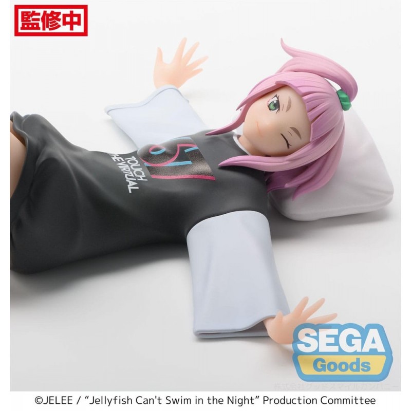 Descubre la encantadora estatua de PVC de 'Jellyfish Can't Swim in the Night', una pieza imprescindible para los coleccionistas de anime. Fabricada por Sega, esta figura representa a un personaje acostado de manera relajada, con un estilo único que capta la esencia del manga. Sus cabellos rosados contrastan con su ropa oscura, que lleva un diseño moderno que incluye el número '51' y el texto 'Touch The Virtual'.
