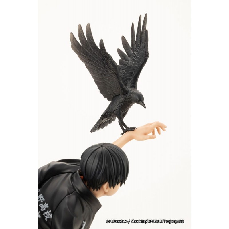 La estatua en PVC de Tobio Kageyama es una pieza imprescindible para los entusiastas del manga y anime. Realizada por Kotobukiya en su línea ARTFX J, presenta a Kageyama en una postura imponente sobre un tronco detallado. La figura, de 29 cm de altura, incluye un cuervo en vuelo que añade dinamismo a la escena. Su uniforme negro con detalles naranja refleja su carácter competitivo, capturando cada detalle con precisión.