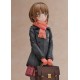 La figura muestra a Kaede vistiendo un abrigo oscuro de doble botón, combinado con una bufanda y guantes de color naranja. Su expresión dulce y calmada se complementa con su cabello castaño corto. Sostiene un maletín marrón oscuro y un paraguas azul, añadiendo un toque de realismo. La base representa un suelo nevado, proporcionando un escenario invernal.