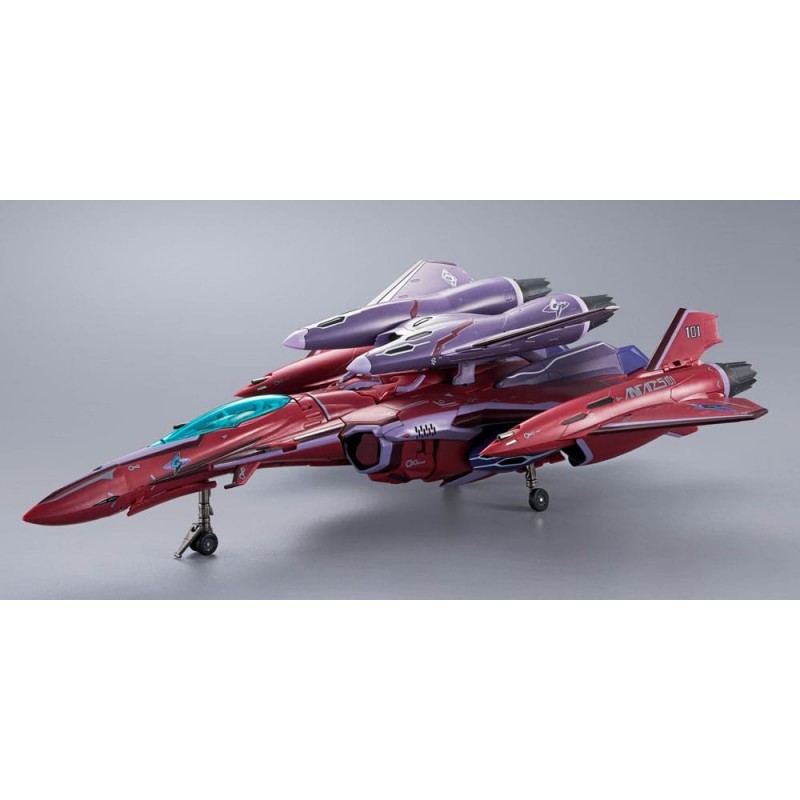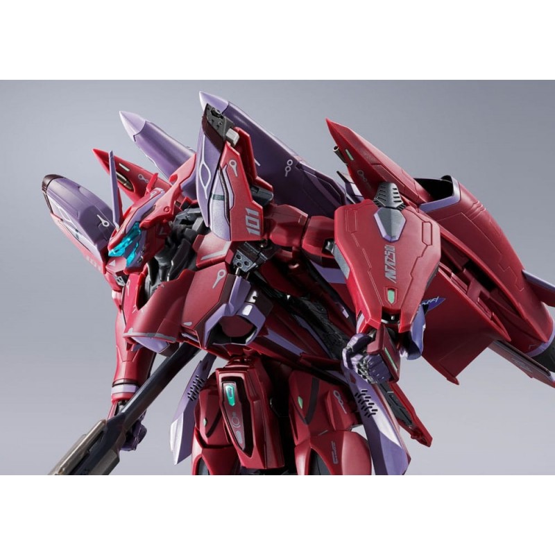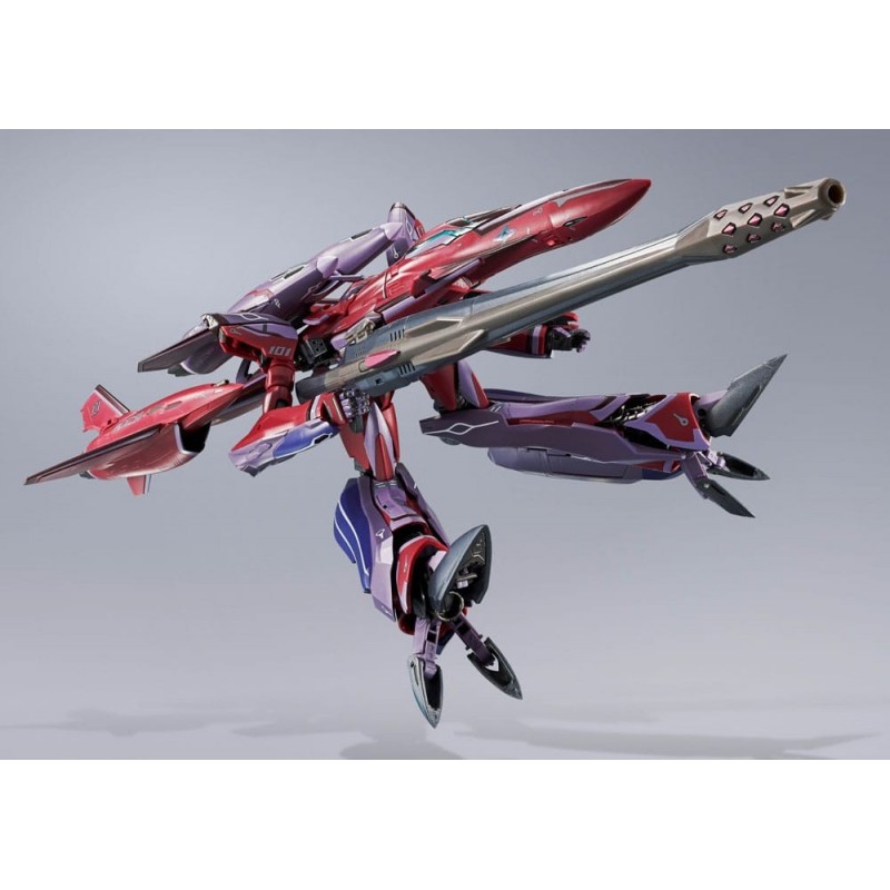 La figura se transforma en un avión de combate, destacando su versatilidad y atención al detalle. Hecha de metal, garantiza durabilidad y realismo. Incluye múltiples accesorios que permiten recrear tus escenas favoritas de la serie. Perfecta para exhibirla en modo robot o avión, se convierte en un complemento ideal para cualquier colección temática de Macross Frontier.