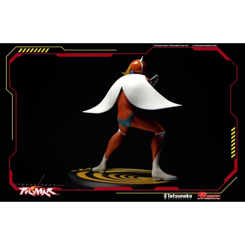 La figura se alza sobre un soporte elegantemente diseñado, inspirado en la secuencia de apertura psicodélica de la serie. Como parte del set, se incluye un folleto conmemorativo de 16 páginas y una moneda metálica, lo que convierte a esta estatua en una pieza de coleccionista imprescindible para los fans de Tatsunoko y Hurricane Polimar. Limitada a tan solo 299 unidades, esta estatua es un homenaje al legado de Tatsuo Yoshida.