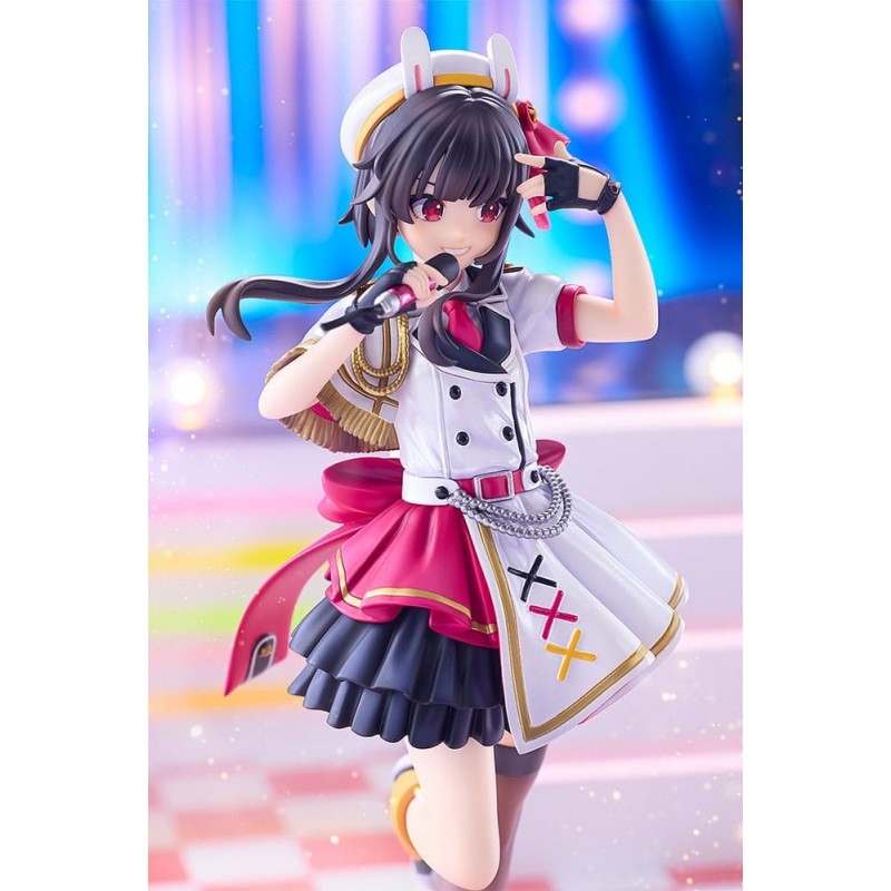 Descubre la estatua de PVC de Megumin en su versión Idol del anime Konosuba. Esta figura de 16 cm captura el encanto y la energía del personaje, mostrando a Megumin en una pose dinámica con un micrófono en mano. Su atuendo está cuidadosamente detallado, con colores llamativos en rojo y blanco, resaltando su carácter vibrante. Fabricada por Kadokawa, esta estatua incluye una base para su exhibición.