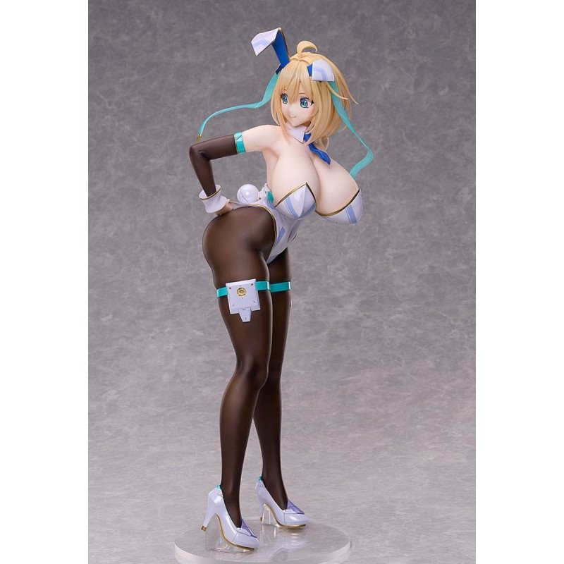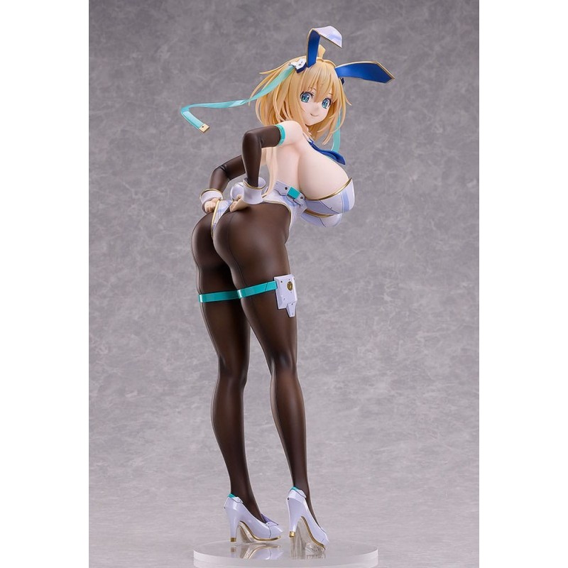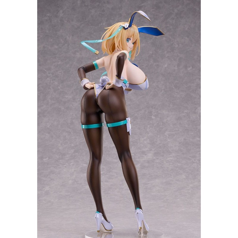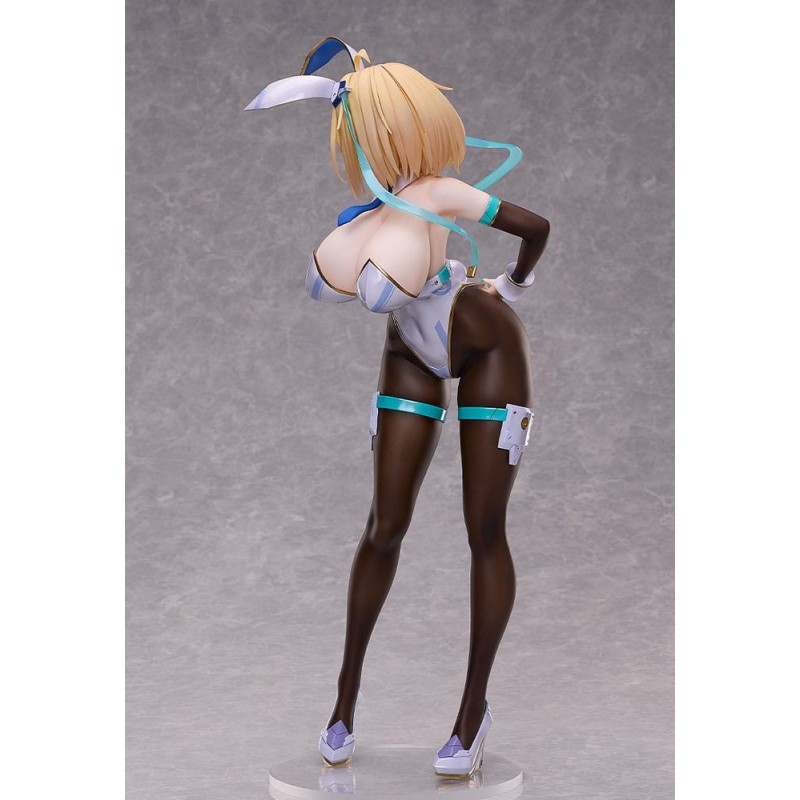 La estatua de PVC de Sophia F. Shirring en su versión Bunny Ver. 3rd es una pieza de colección impresionante y detallada. Con sus 43 cm de altura, esta figura presenta a Sophia con un traje de conejo, combinando colores blancos, negros y detalles en azul y dorado. Está equipada con orejas de conejo, medias negras y zapatos de tacón, en una postura dinámica y seductora.