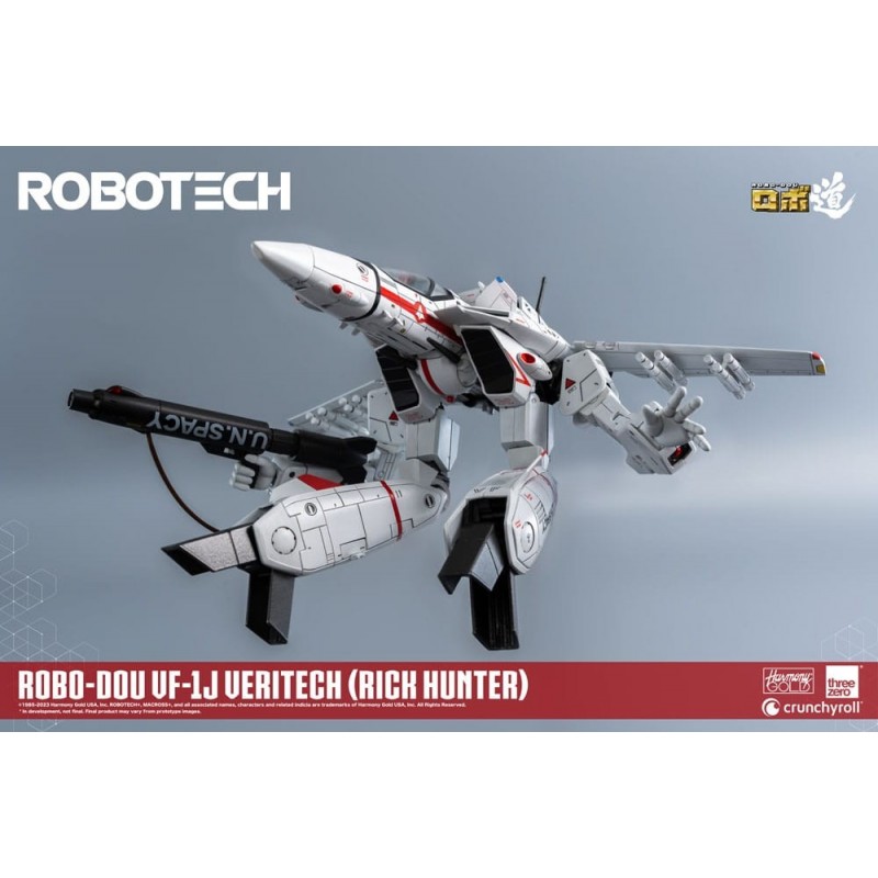 La figura ROBO-DOU VF-1J Veritech de Rick Hunter es un imprescindible para los seguidores de Robotech. Mide aproximadamente 20 cm y destaca por su detallado diseño. Fabricada con materiales de calidad como ABS, POM, PVC, aleación de zinc y piezas metálicas, esta figura es parte de la línea MDLX de ThreeZero. Su diseño fiel al anime y su capacidad de transformación entre los modos Fighter, Guardian y Battloid, hacen de esta figura un producto excepcional. Con licencia oficial, es ideal tanto como regalo original como para añadir a una colección única.