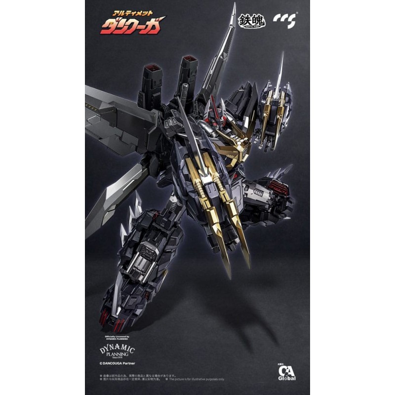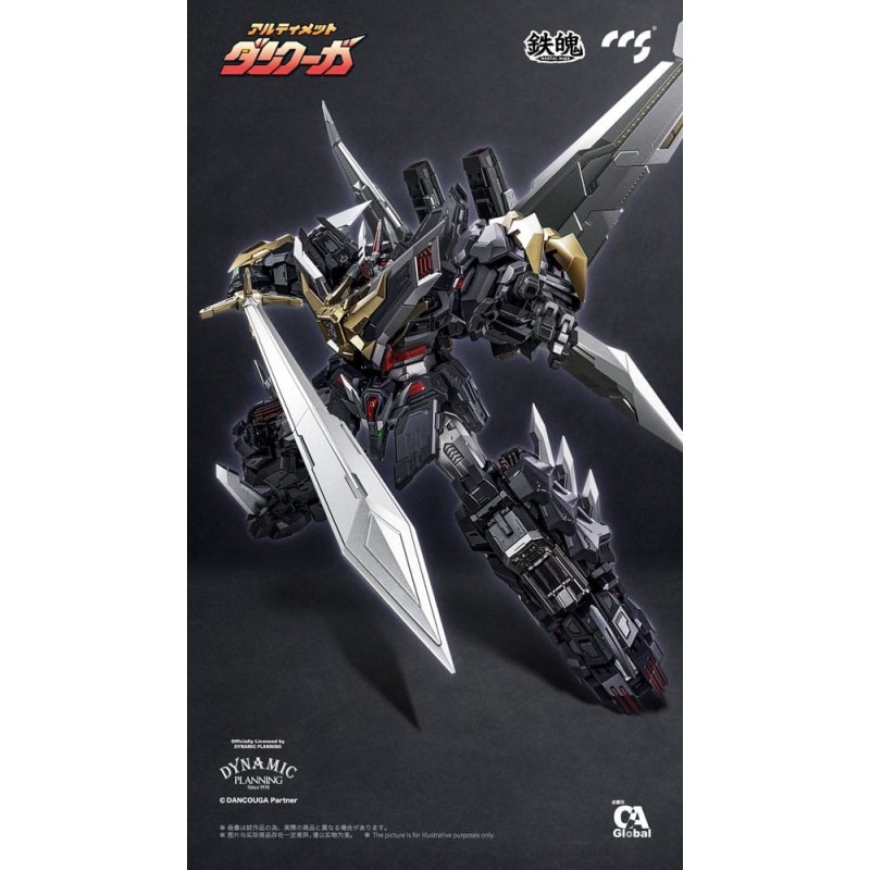 El diseño del Ultimate Dancouga es espectacular, presentando un acabado en tonos oscuros, con detalles dorados y plateados que acentúan el carácter majestuoso y robusto del mecha. Sus articulaciones permiten una amplia variedad de poses, ideal para coleccionistas que desean recrear escenas épicas del anime.